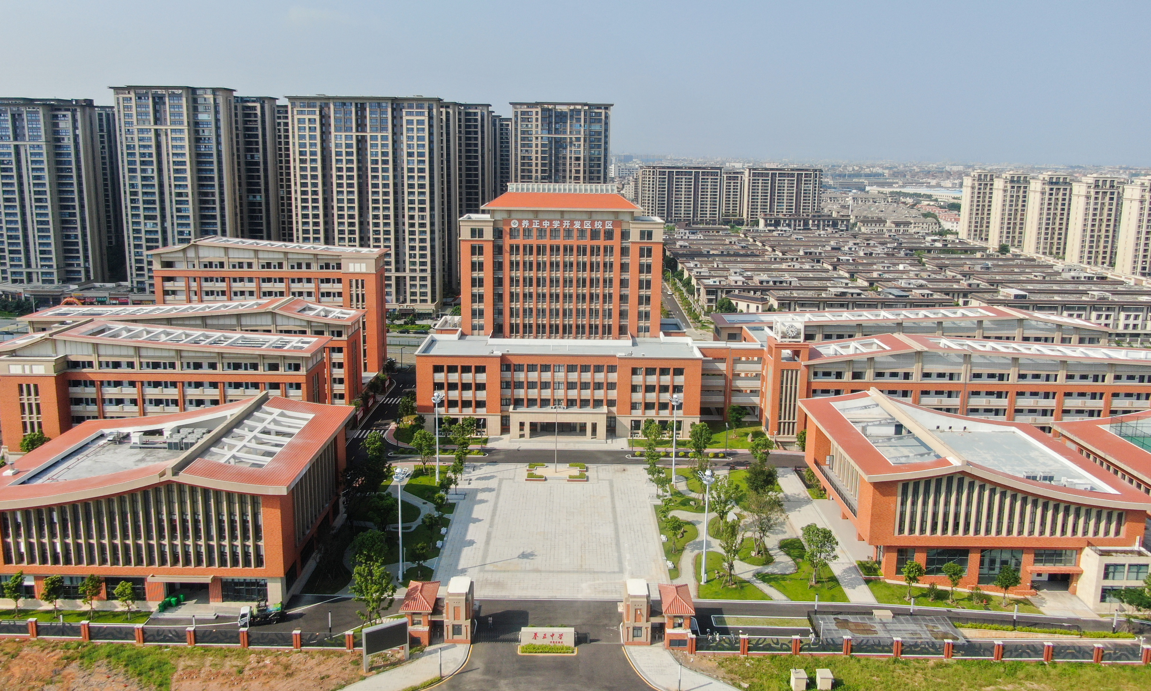 晋江经济开发区实现幼儿园到初中“全龄段”教育配套 中国晋江网8月31日讯(记者 蔡红亮 陈巧玲) “好学多问肯钻研,上课专心听讲,积极发表见解,乐于科学探索、养成阅读习惯……”直到坐在崭新的教室,和新同学齐声朗读《中小学生守则》,接受新生入学训练时,晋江市养正中学开发区校区初一新生王米娜才有了上初中的真实感,并对即将开启的初中学习生活充满了期待。 去年9月,晋江市养正中学开发区校区启动招生,暂借养正中学新校区过渡办学。今年秋季,开发区校区顺利完成项目建设和项目采购,初一、初二全体师生将正式入驻新校园。 作为养正中学的分校区,开发区校区建筑秉承养正中学的风格,教学楼、行政综合楼、师生宿舍、食堂、体育馆等一幢幢崭新的建筑矗立在校园中。校园规划布局十分清晰,教学区位于学校东北侧,运动区设置于东部,生活区位于西侧。 “学校设备设施齐全,硬件建设高规格,同时在软件建设上也下足了功夫,依托养正中学进行师资统筹统配,抽调骨干教师到开发区校区任教,并同步招收一批优秀的新教师,新老搭配,师资力量雄厚。”养正中学党委委员、副校长、开发区校区执行校长许承勇告诉记者。
